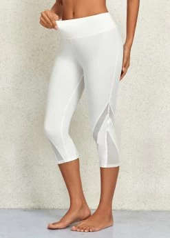 White Mid Waisted Capri Elastic Waist Leggings