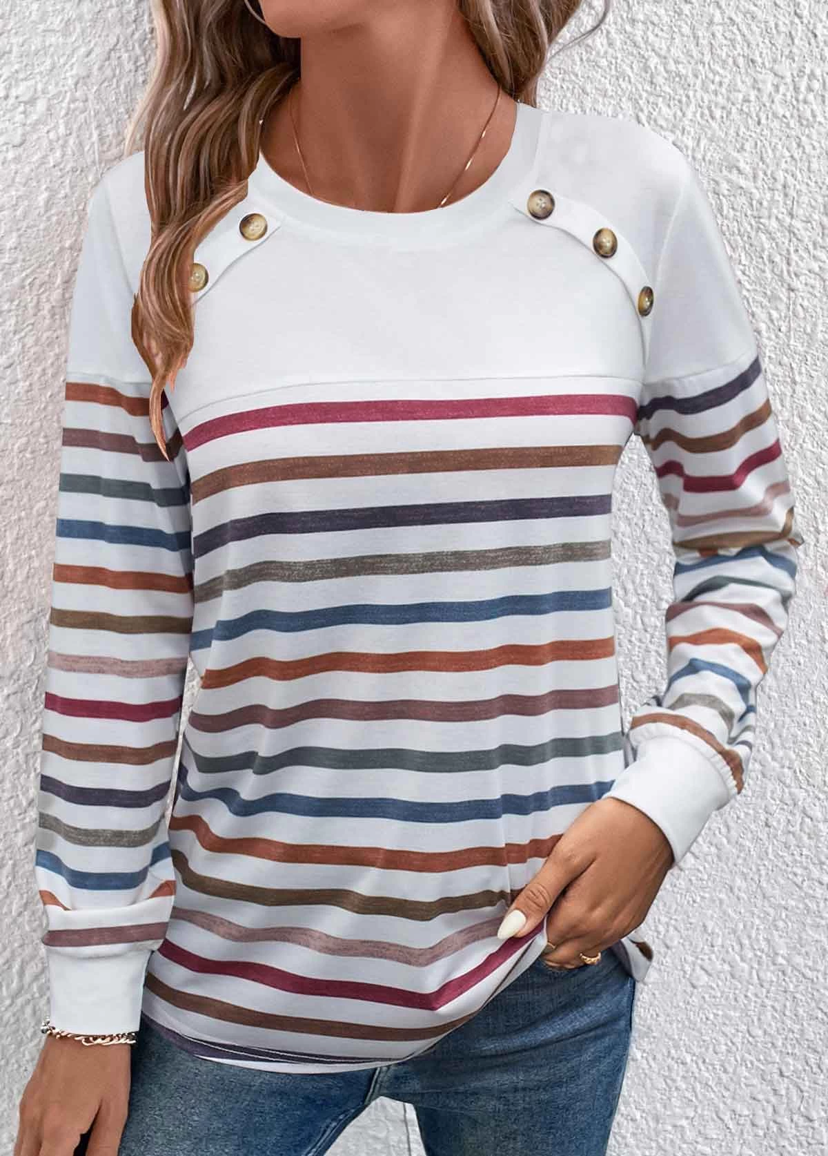 Be the first to review “White Patchwork Striped Long Sleeve T Shirt” Cancel reply