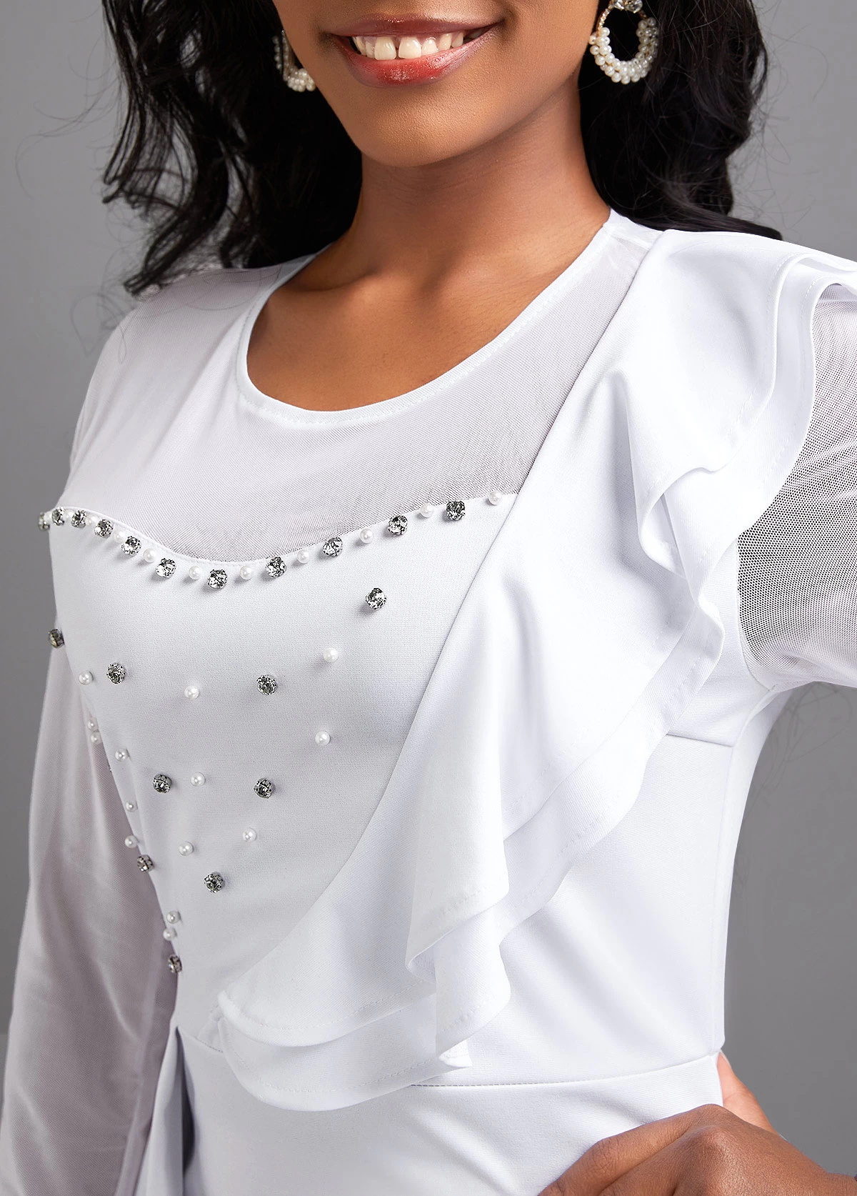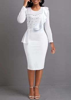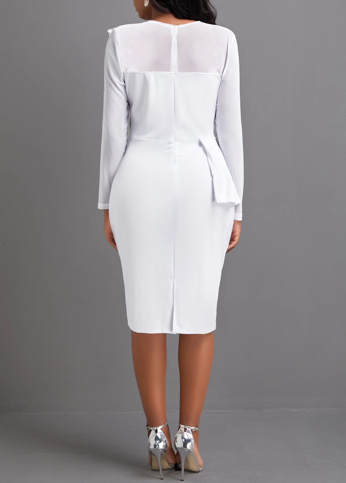 White Pearl Long Sleeve Round Neck Bodycon Dress