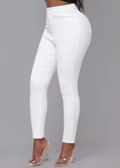 White Skinny Zipper Fly High Waisted Pants