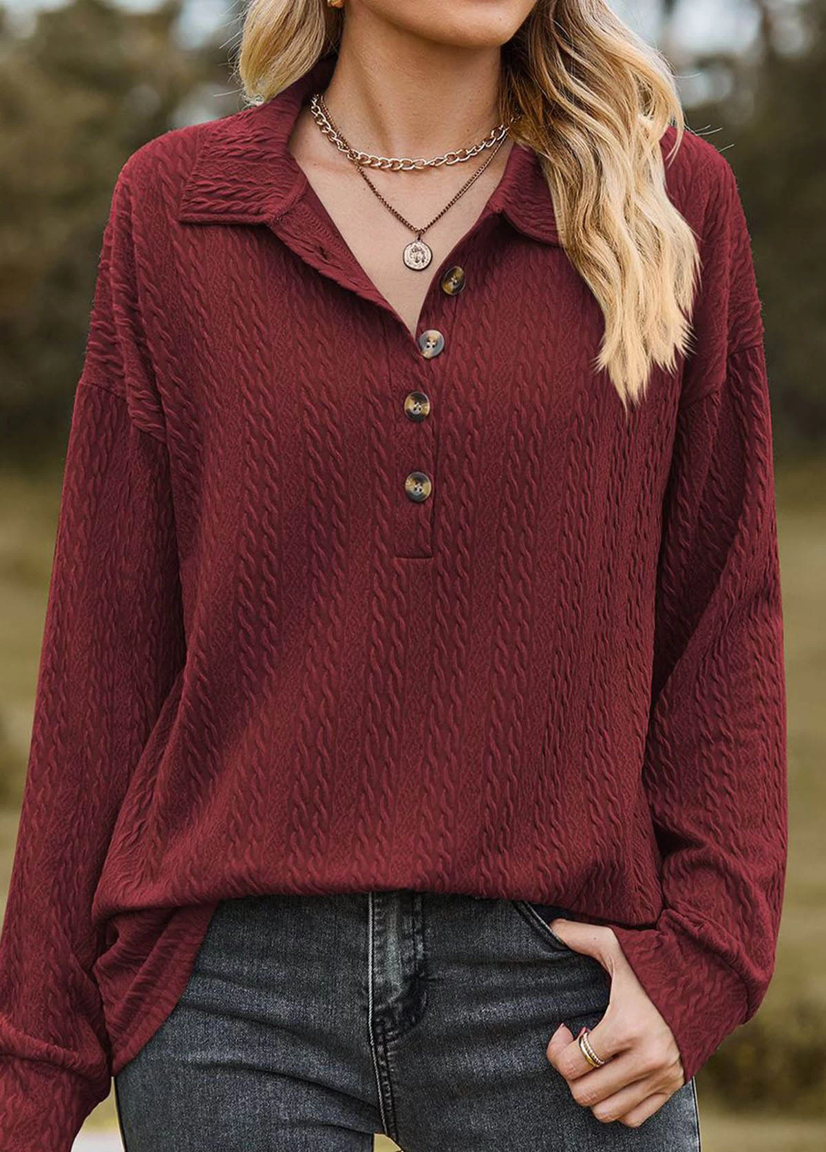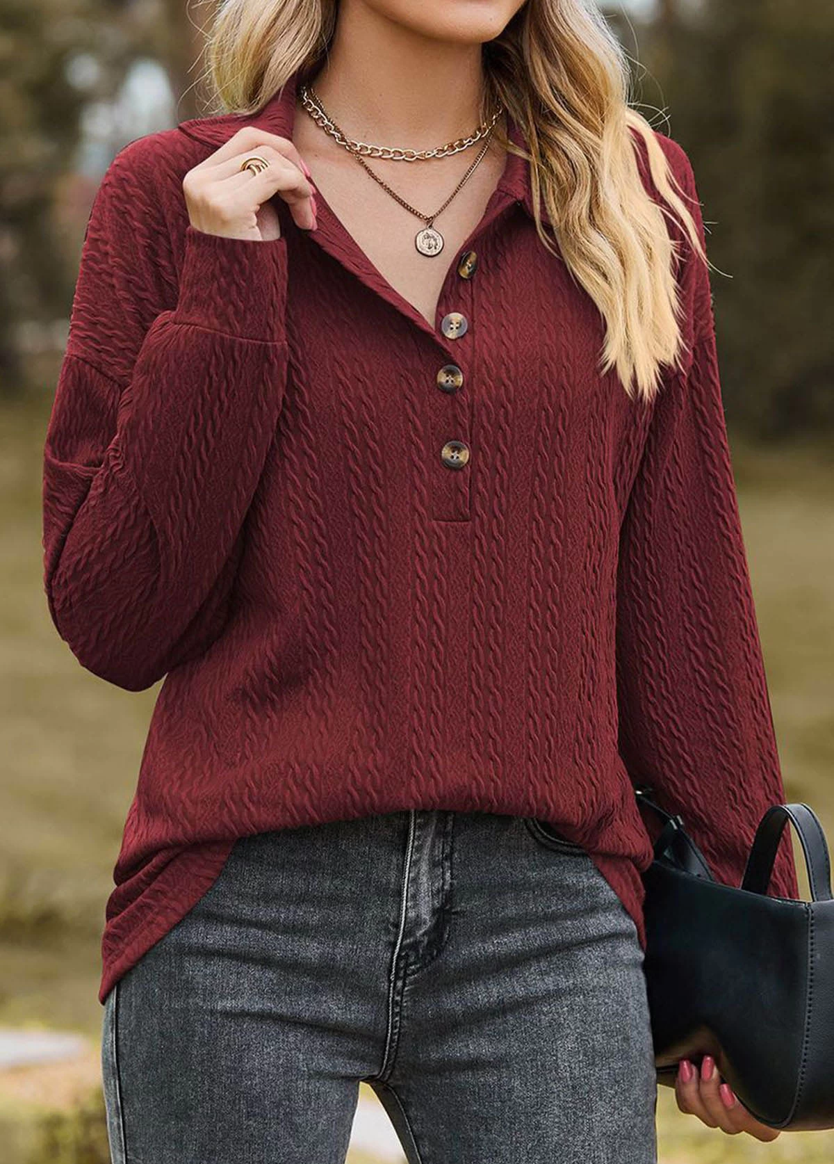Be the first to review “Wine Red Button Long Sleeve Sweatshirt” Cancel reply