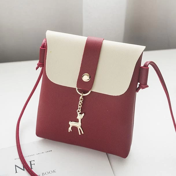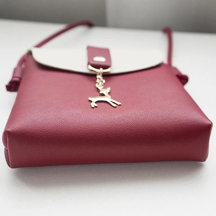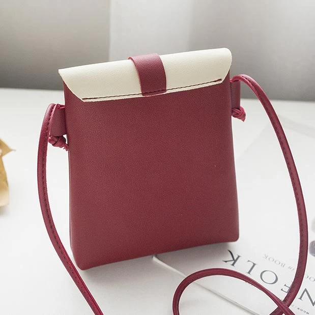 Wine Red Contrast Color Magnetic Shoulder Bag