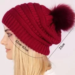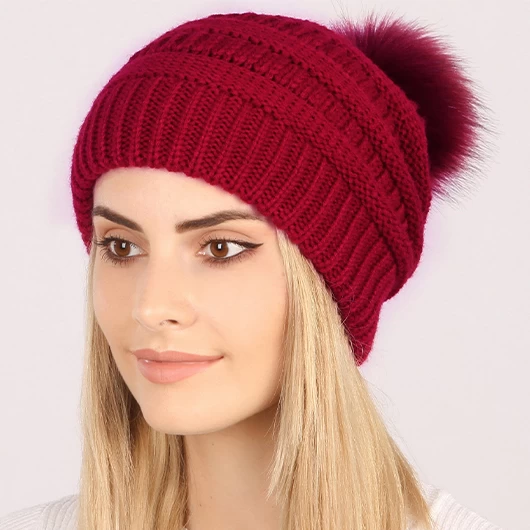 Wine Red Puff Ball Acrylic Beanie Hat