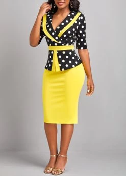 Be the first to review “Yellow Patchwork Polka Dot Half Sleeve Bodycon Dress” Cancel reply